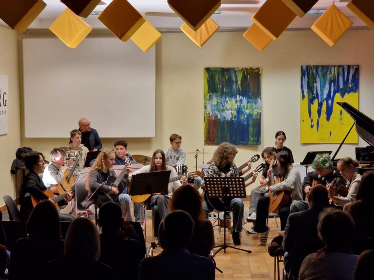 Am Donnerstag, dem 5. Februar 2026 fand in der Aula des BORG Grieskirchen der Vortragsabend „Saiten – Tasten – Beats“ statt. Schülerinnen und Schüler der Instrumentalklassen nutzten die Gelegenheit, ihr musikalisches Können dem Publikum zu präsentieren.